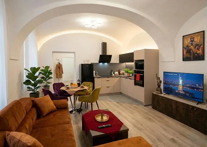 簡単な食事を用意できる設備の整った台所もあります。 Alma Apartment Downtownから650メートルほどのところにKosice, ASバス停があります。